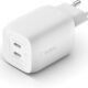 Belkin 65W Dual USB Type C Wall Charger, Fast Charging Power Delivery 3.0 with GaN Technology, USB C Charger